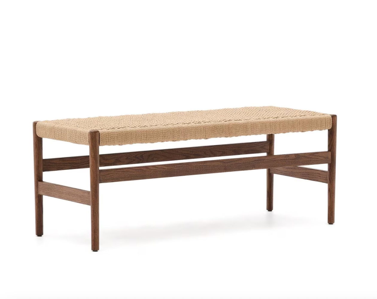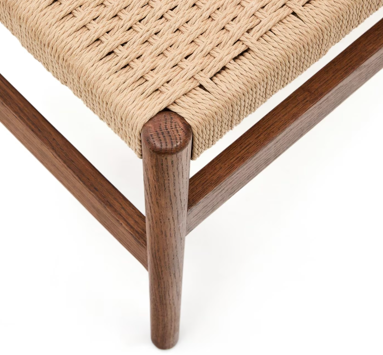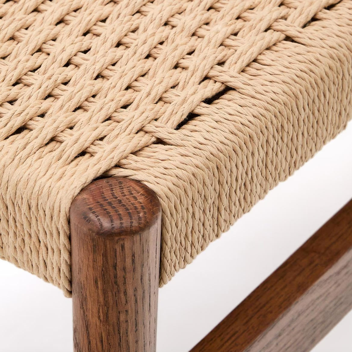 Zitbank is ambachtelijk ontworpen met een structuur van massief eikenhout en een handgevlochten zitting van papiertouw. Hij is zo mooi afgewerkt dat het lijkt alsof je de natuur in huis haalt. Bankje van massief eikenhout met een walnoot afwerking. Gemaakt met natuurlijke materialen waardoor elk bankje unieke tinten en nerven...