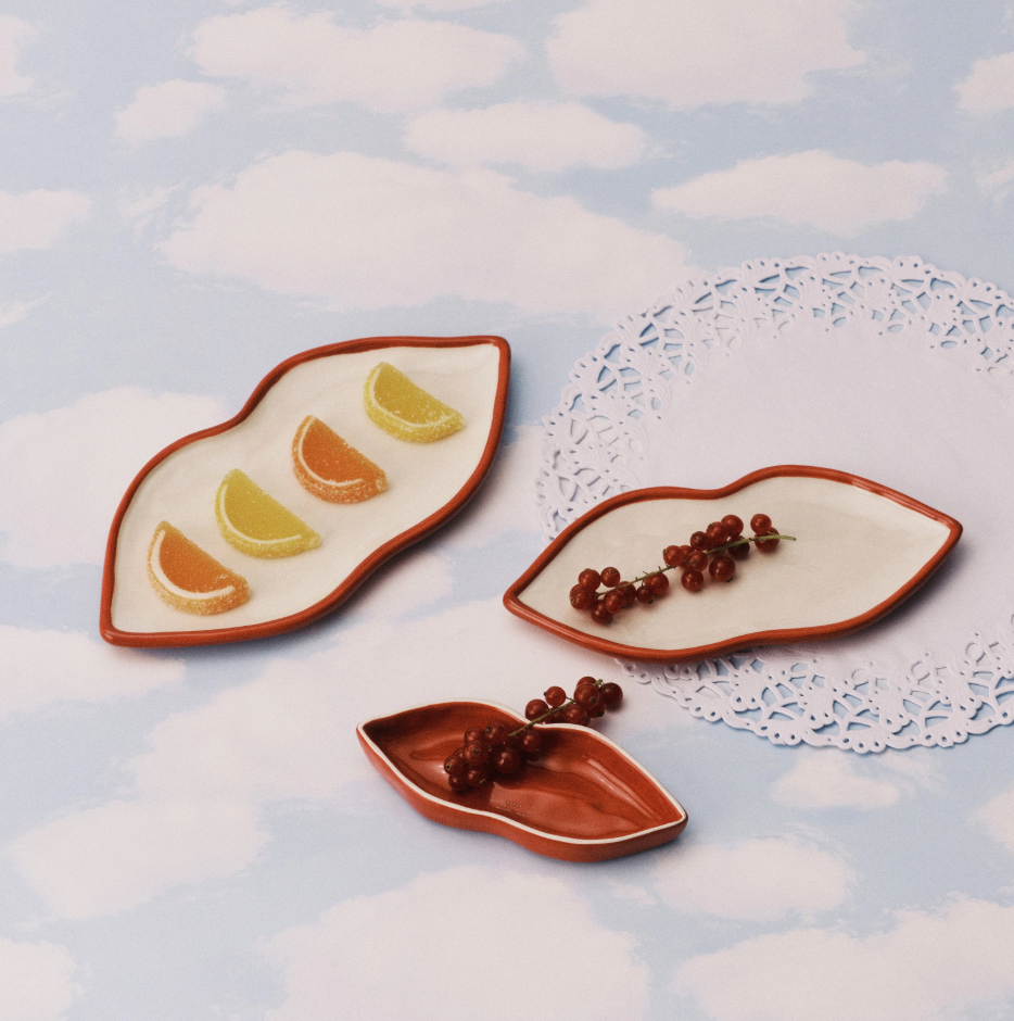 De aardewerken schalen uit de Les Objets Mouleversants collectie hebben de vorm van rode lippen en geven je tafel een dromerige twist. De schalen zijn beschikbaar in drie formaten die nauwkeurig op elkaar gestapeld kunnen worden tot een opvallend tafeljuweel. Ook perfect als opbergplek voor sieraden en andere kleine schatten....