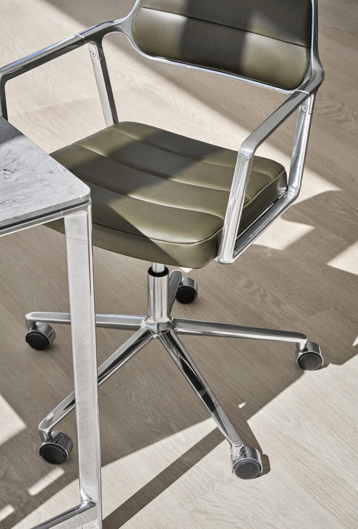 De Swivel Chair is een ergonomische en stijlvolle bureaustoel, ontworpen voor zowel thuis- als kantooromgevingen. De combinatie van hoogwaardig leer en een gepolijst aluminium frame zorgt voor een tijdloos design en optimaal zitcomfort. Een perfecte balans tussen functionaliteit en design, geschikt voor diverse interieurs. Afmetingen: hoogte: 87 cm - breedte:...