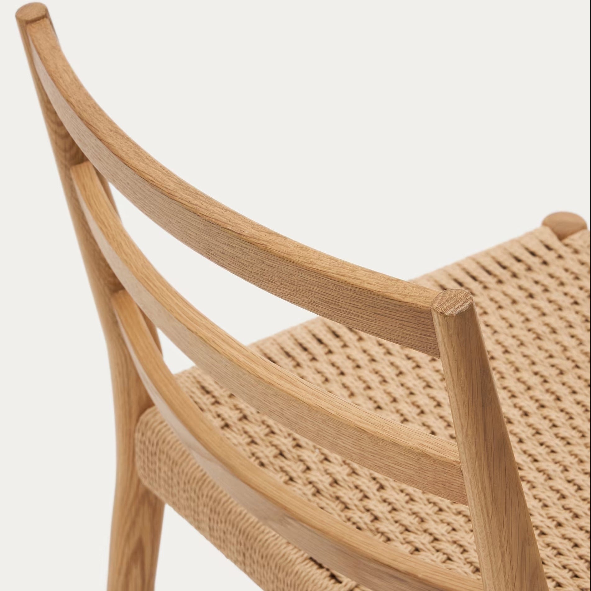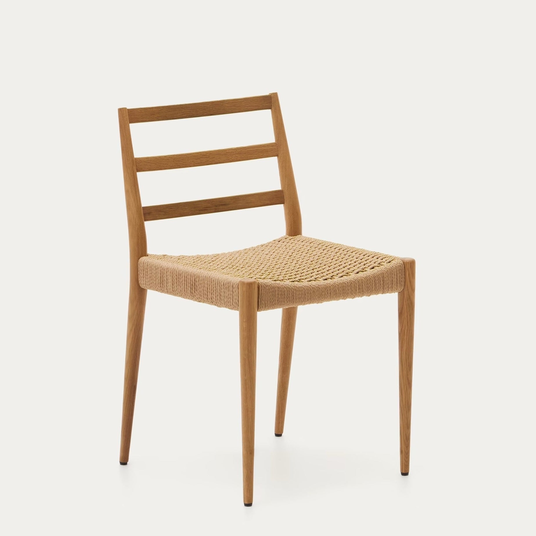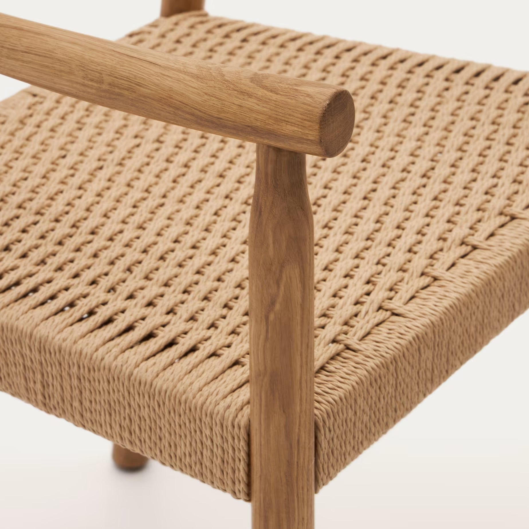 This wooden chair is a handmade design with a solid oak frame and a hand-woven paper rope seat. It also has the ideal finishes to bring nature into your home. Material: chair in solid oak with natural finish rope seat 100% FSChand-woven and UV-resistant rope Measurements: Height: 82 cm Width:...