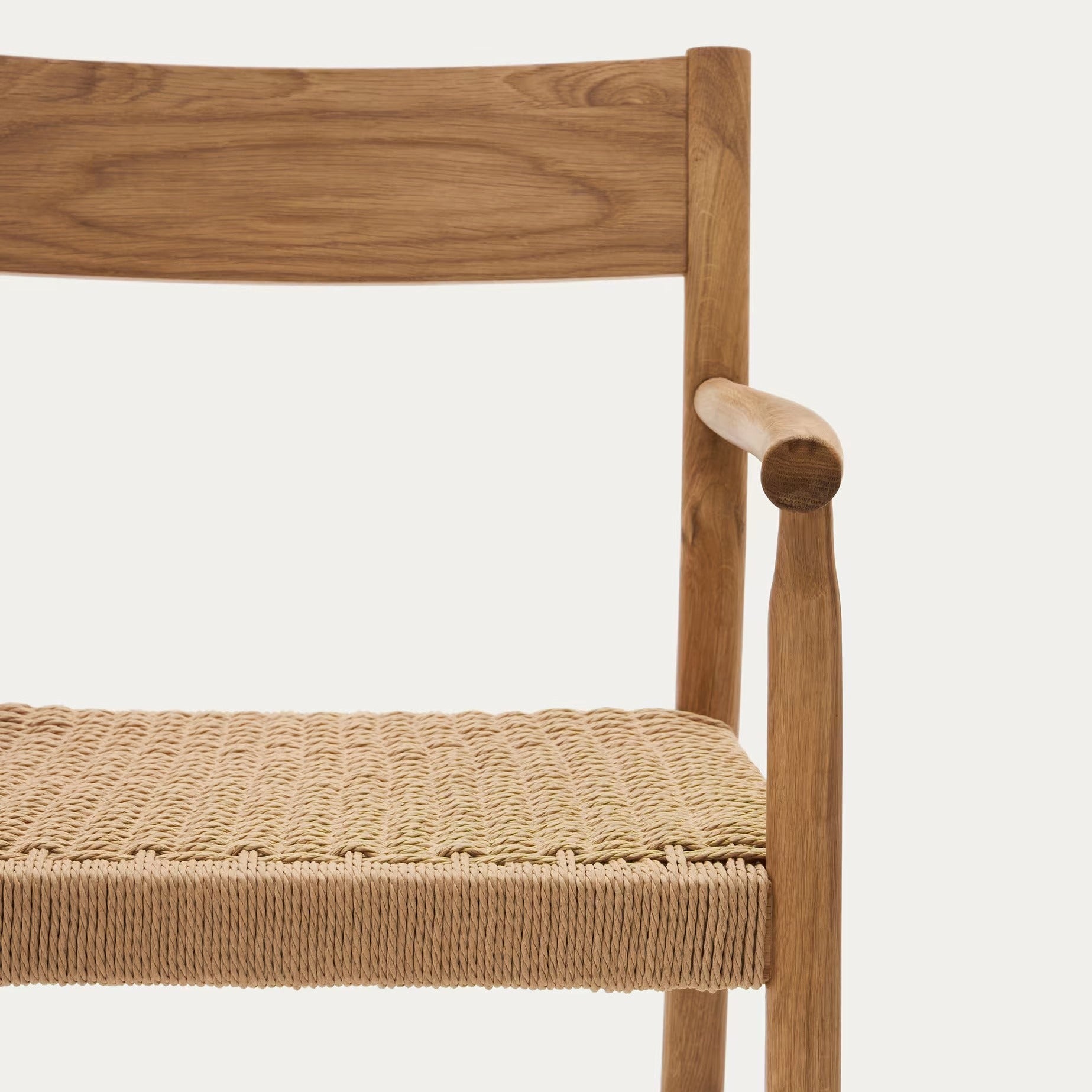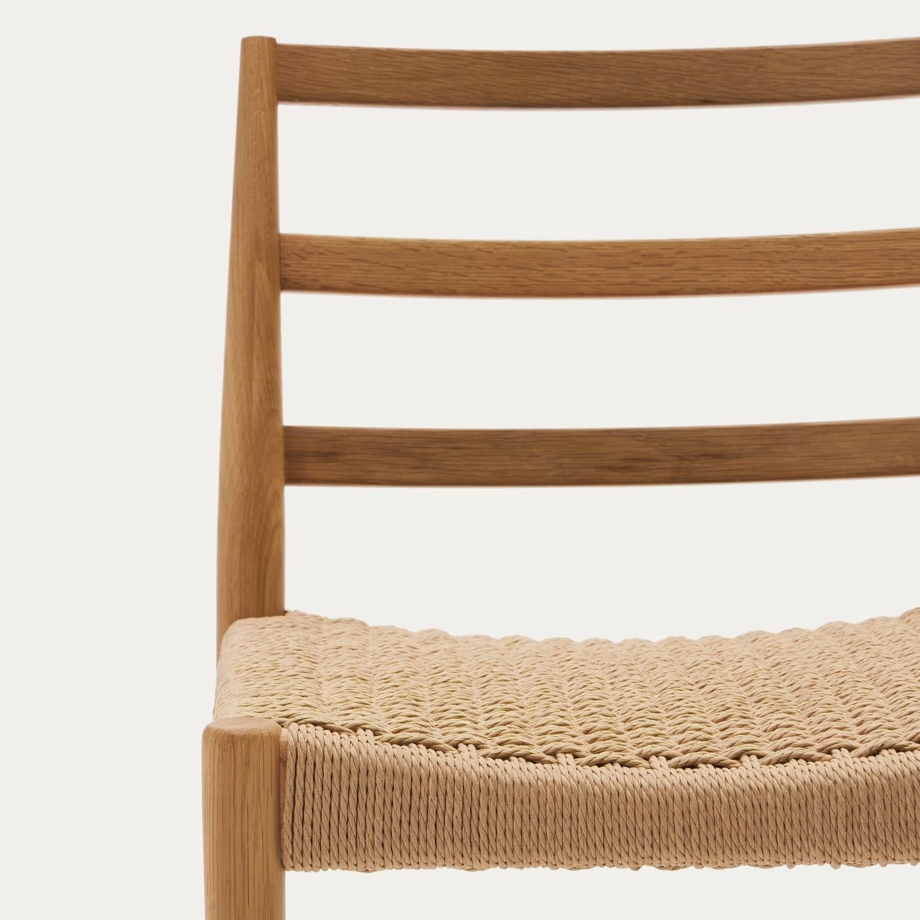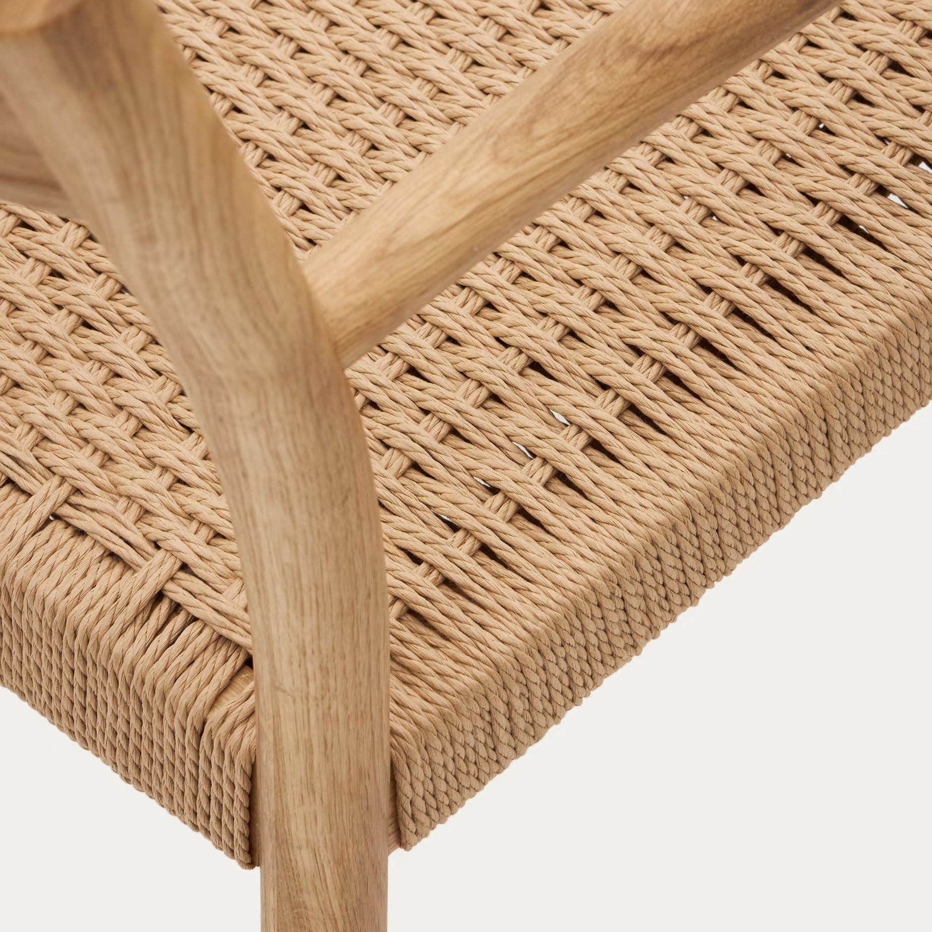 This wooden chair is a handmade design with a solid oak frame and a hand-woven paper rope seat. It also has the ideal finishes to bring nature into your home. Material: chair in solid oak with natural finish rope seat 100% FSChand-woven and UV-resistant rope Measurements: Height: 82 cm Width:...