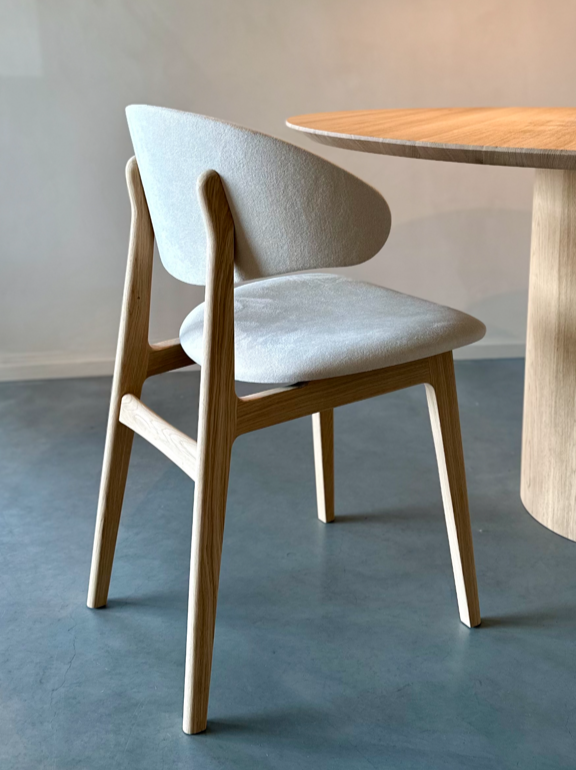 De Alocs eetkamerstoel kan je omschrijven als een combinatie tussen Scandinavisch design en de sereniteit Japans design. Deze combinatie is samengesmolten tot een prachtige eetkamerstoel om lang van te genieten. Afmetingen: breedte: 60 cm x diepte: 55 cm x hoogte: 77 cm Materiaal: eikhout - verschillende stoffen en kleuren mogelijk Leveringstermijn:...