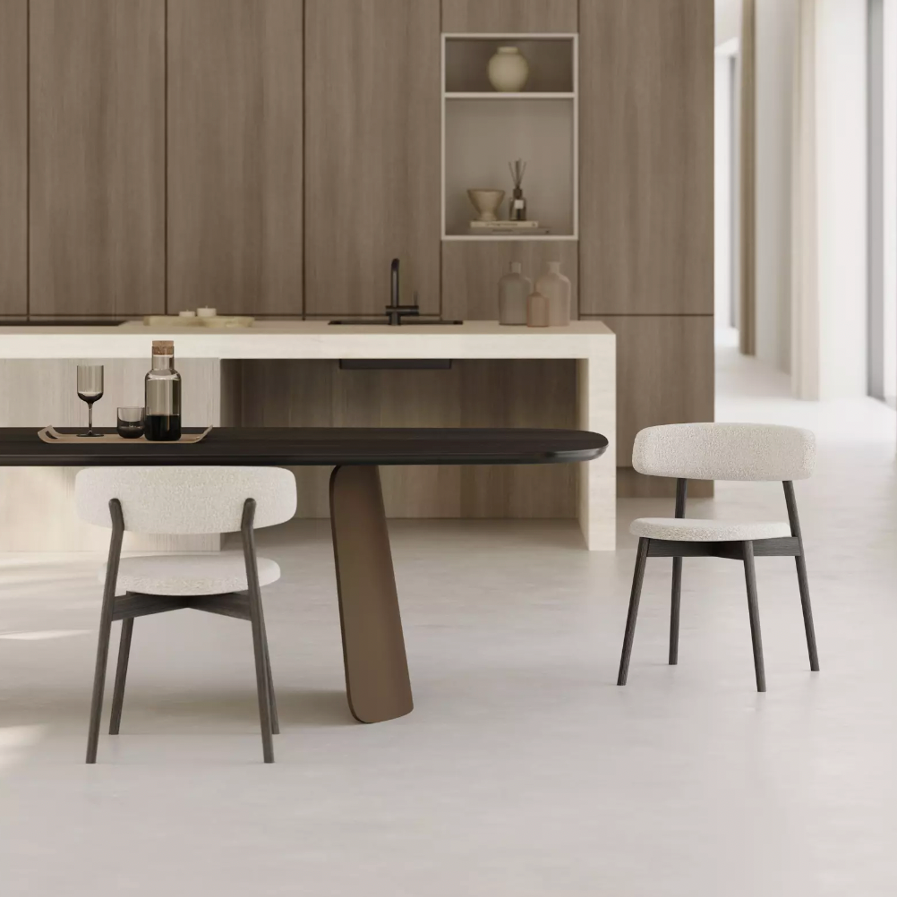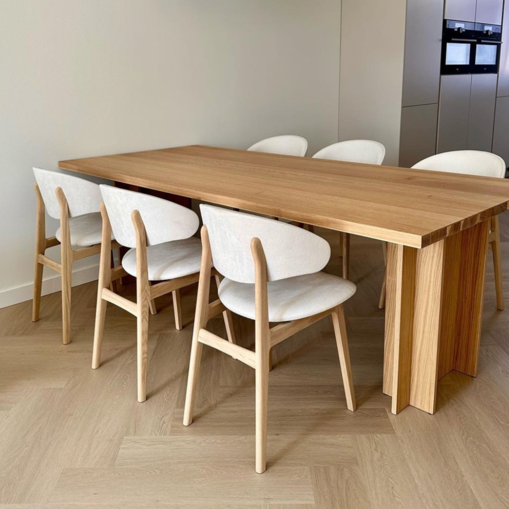 De klassieke charme van massief eikenhout met een formele, moderne structuur. Het ontwerp is tegelijkertijd licht en krachtig en daarmee de perfecte keuze voor mensen die op zoek zijn naar een mix van traditioneel en modern. Donkere eik met gestoffeerde zitting. De stof van de zitting is afneembaar en dus...