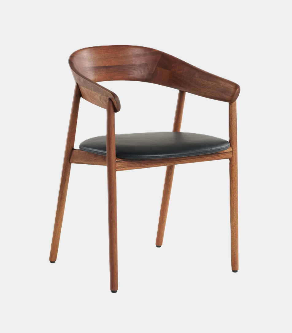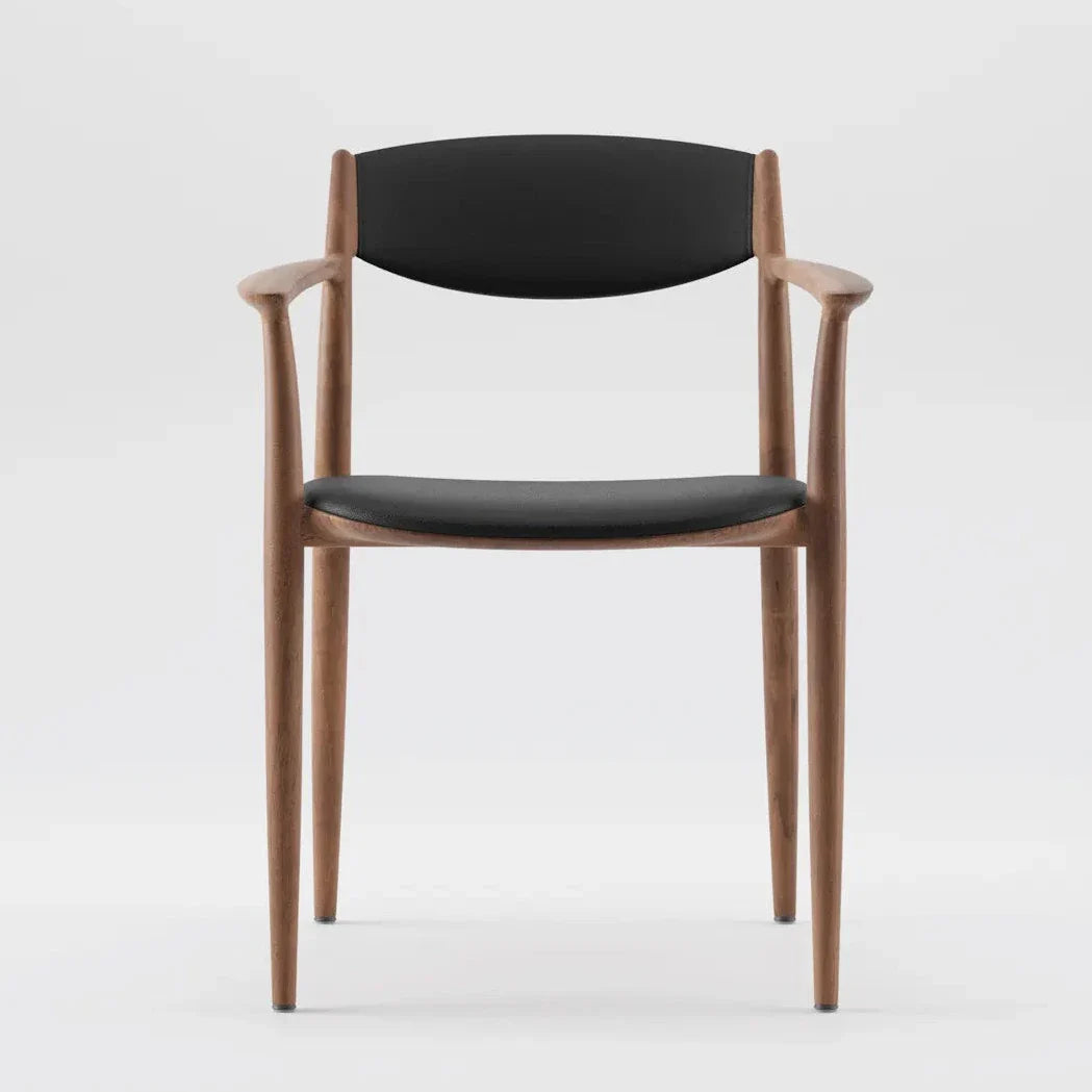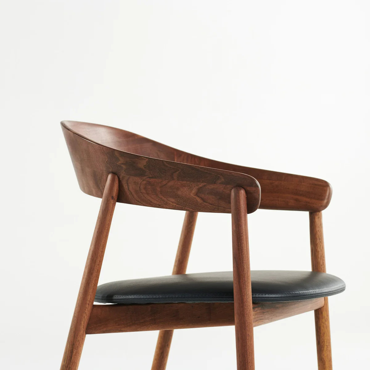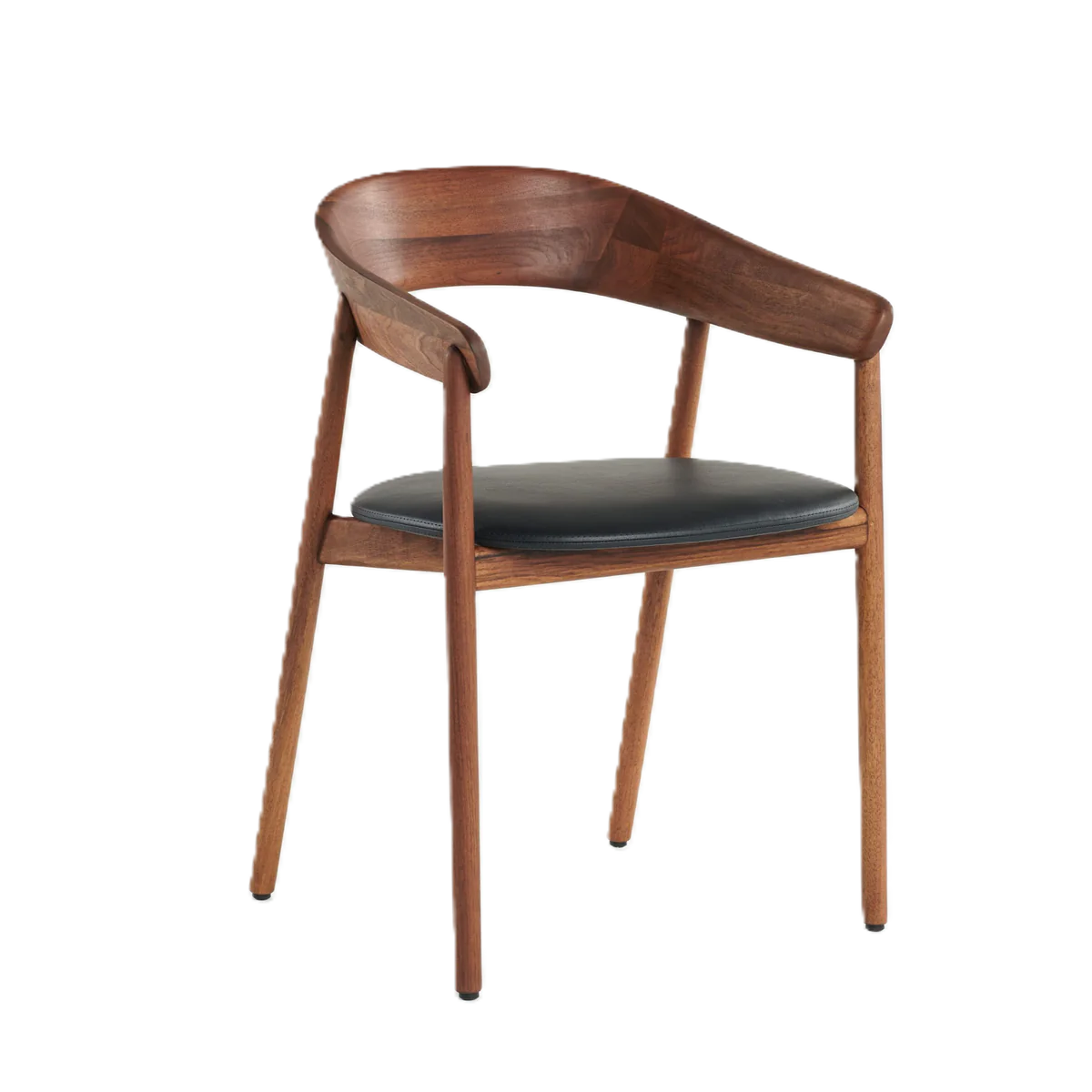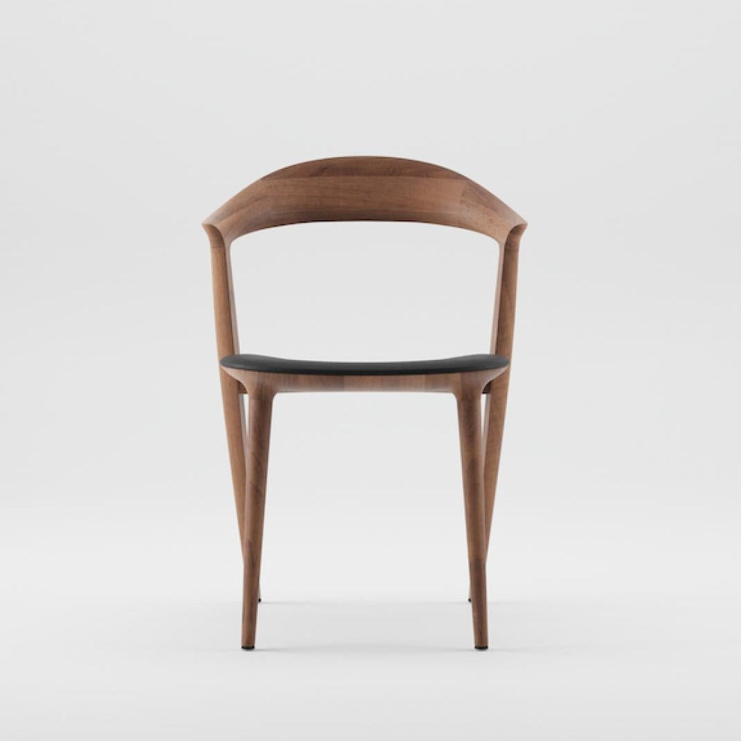 Beside the ergonomics, its delicate surfaces invite additional tactile exploration. Supremely thin and light and meticulously hand finished from experienced craftsmen. The seat can be ordered in solid wood, or upholstered with leather or fabric. Brand: ArtisanMaterial: European Walnut / American Walnut Measurements: W: 54 cm H: 76 cm D: 53 cm