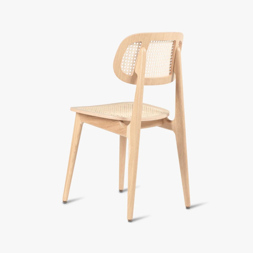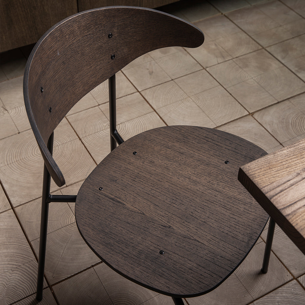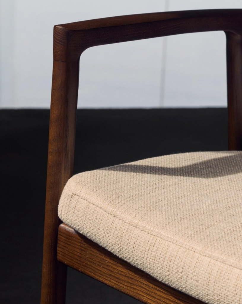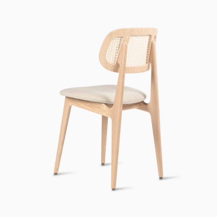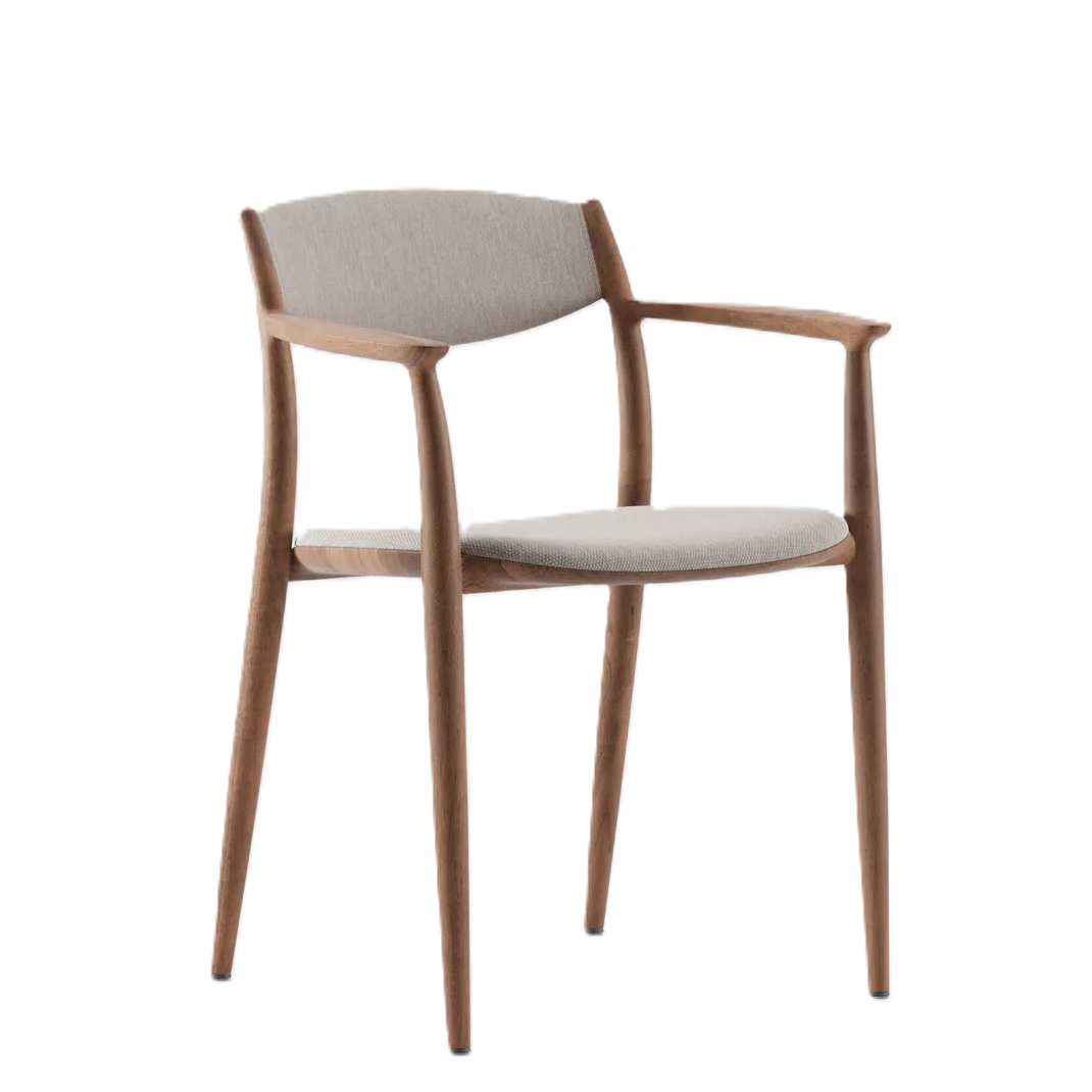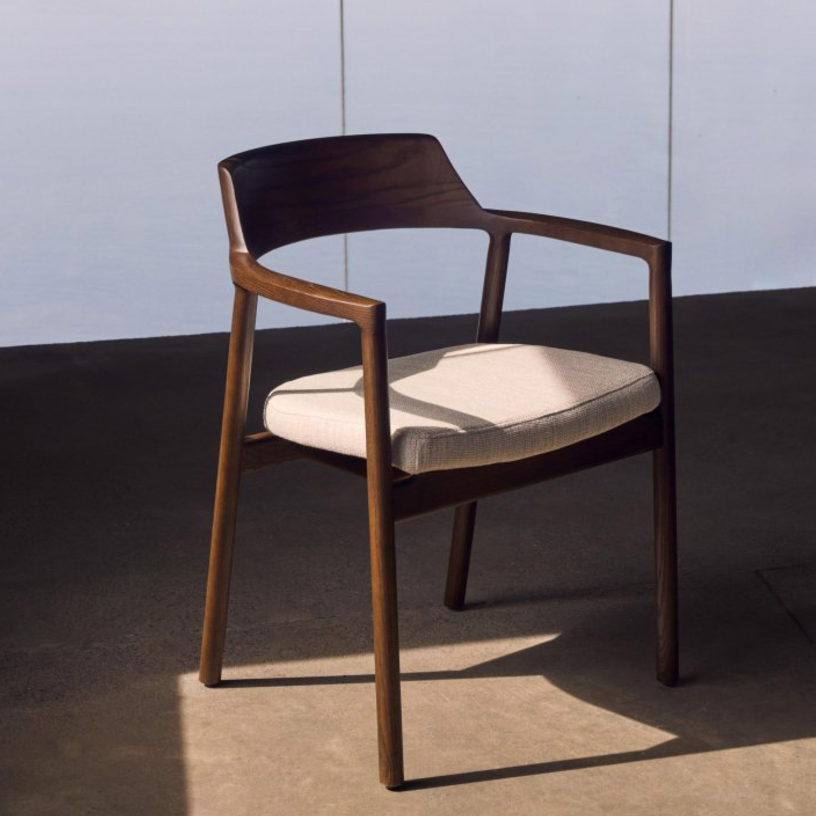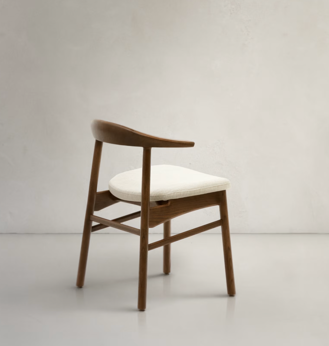 Beside the ergonomics, its delicate surfaces invite additional tactile exploration. Supremely thin and light and meticulously hand finished from experienced craftsmen. The seat can be ordered in solid wood, or upholstered with leather or fabric. Brand: ArtisanMaterial: European Walnut / American Walnut Measurements: W: 54 cm H: 76 cm D: 53 cm