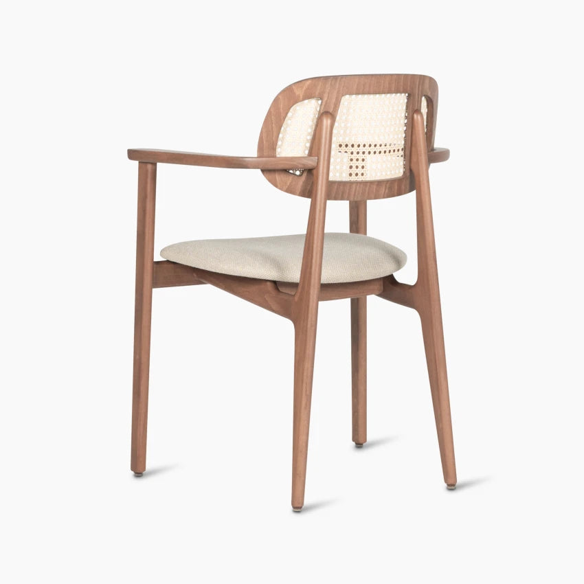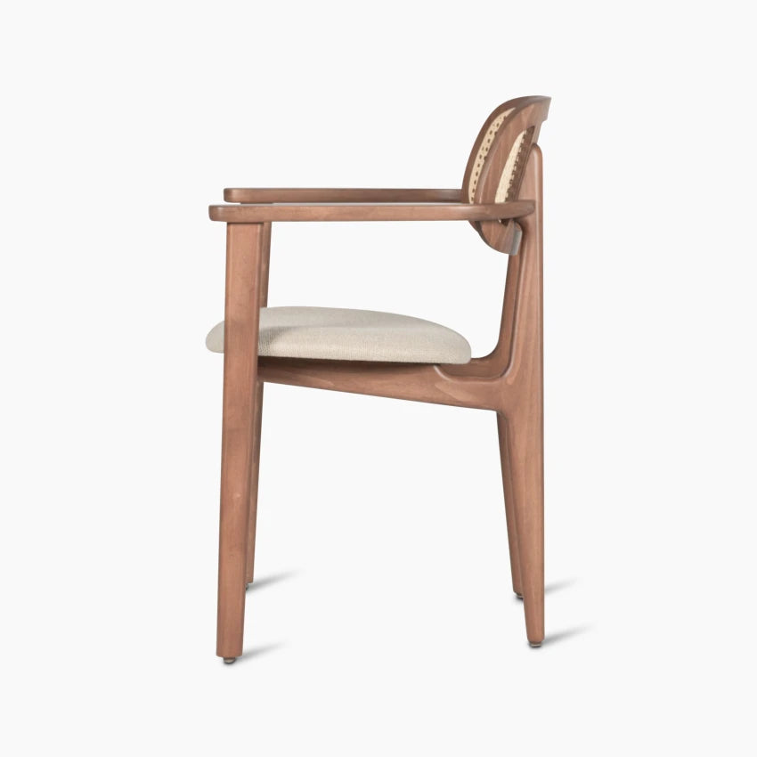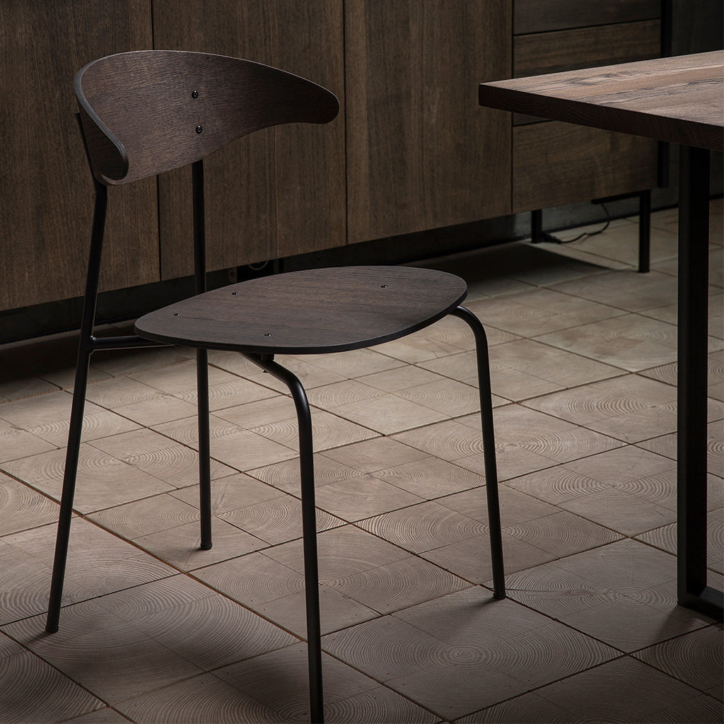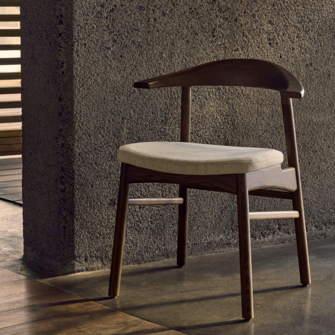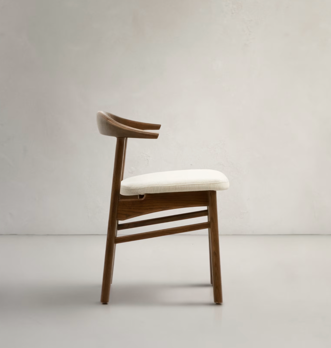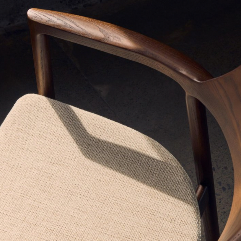 Beside the ergonomics, its delicate surfaces invite additional tactile exploration. Supremely thin and light and meticulously hand finished from experienced craftsmen. The seat can be ordered in solid wood, or upholstered with leather or fabric. Brand: ArtisanMaterial: European Walnut / American Walnut Measurements: W: 54 cm H: 76 cm D: 53 cm