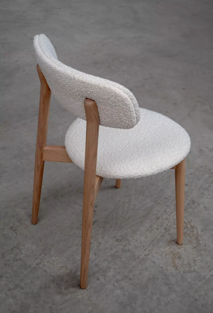 Design eetkamerstoel in massief hout. De gebogen rugleuning van met stoom gebogen massief hout en de afgeronde zitting zorgen voor een zeer comfortabele zitervaring in een minimaal pakket. De stoelen zijn verkrijgbaar in verschillende afwerkingen. Zitting mogelijk in stof of leder. Rugleuning en poten mogelijk in verschillende kleuren eikenhout of...