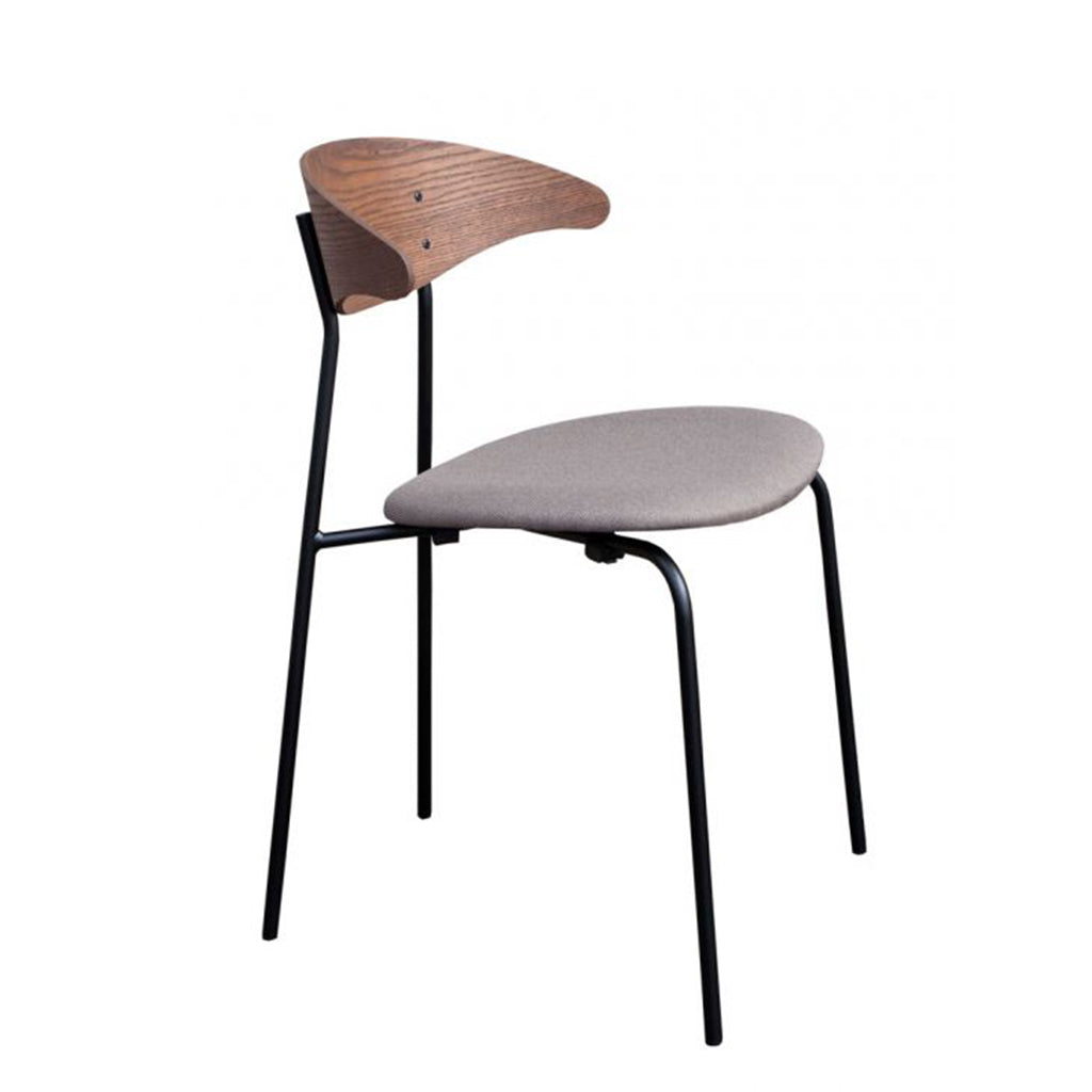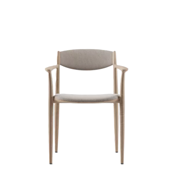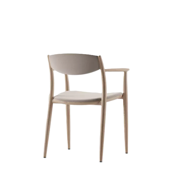Dobby is designed with two different leg types STEEL WOOD -> different colour of ASH of OAK the seat of the RAM can be in FABRIC (different kinds of fabric and colour) LEATHER WOOD With the steel legs, the chair is stackable Material: Steel or wood frame // OAK or ASH...
