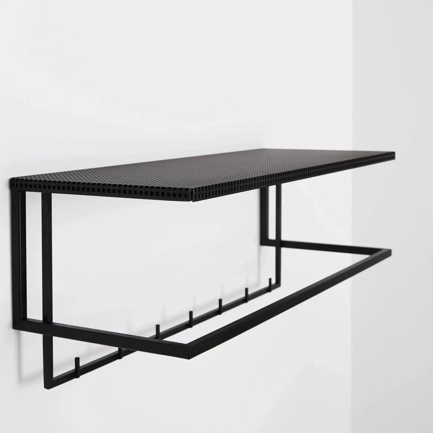 De eenvoudigste en gemakkelijkste manier om uw jassen en jacks op te bergen. Dit elementaire en archetypische kapstokontwerp is zowel een schoonheid als een ruimtebesparing en perfect voor uw gang. Plaats uw hoed of paraplu op het geperforeerde stalen blad of gebruik die ruimte om uw favoriete kunstwerk tentoon te...
