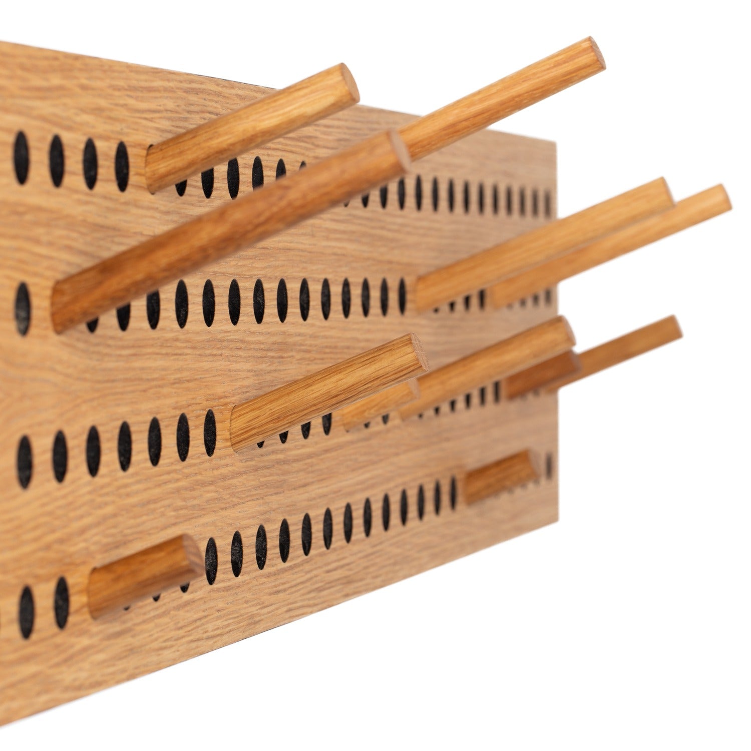 Het Scoreboard geeft een grafische uitstraling en is een unieke manier om favoriete items op te bergen. Met de 12 meegeleverde pinnen is de hoogte van de handgreep eenvoudig aan te passen, waardoor u de mogelijkheid krijgt om een persoonlijke toets te geven. Material: eik Afmeting: Lengte: 100 cm x...