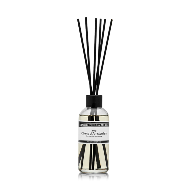 Onze iconische geurstokjes No.12 Objets d’Amsterdam zijn ontworpen om elk interieur mee te verrijken. Geur: groene thee, citrusakkoorden en salie