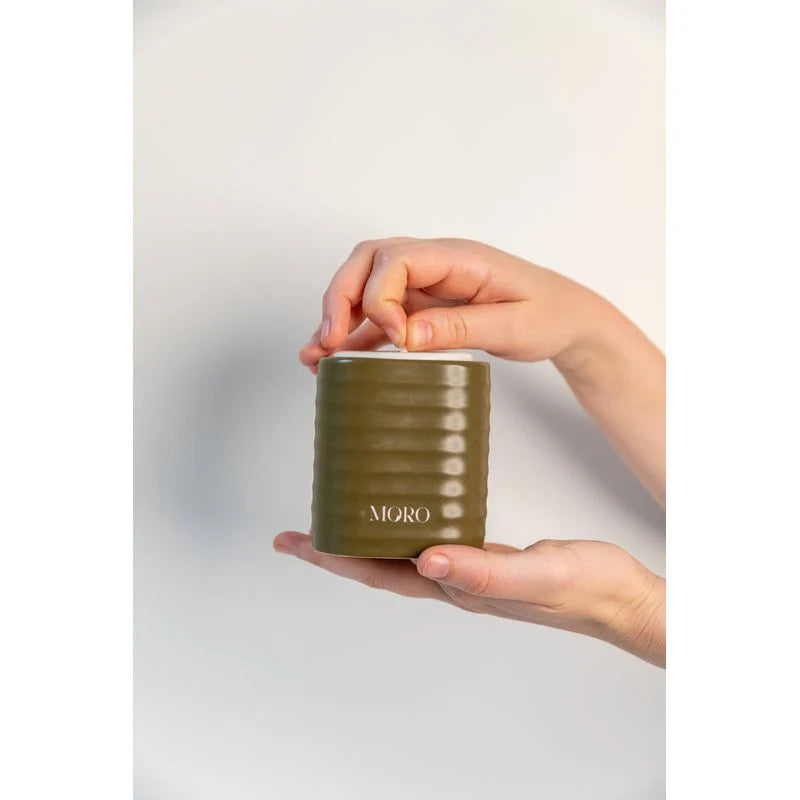 Geniet nu ook van de zalige Moro geurtjes dankzij de nieuwe kaarsen! Handig, mooi én milieubewust dankzij de natuurlijke wax en het refill principe.De onderkant van de keramische kaarsenhouder kan je eenvoudig verwijderen wat je toelaat om de restjes weg te nemen. Een nieuwe refill in de houder en je...