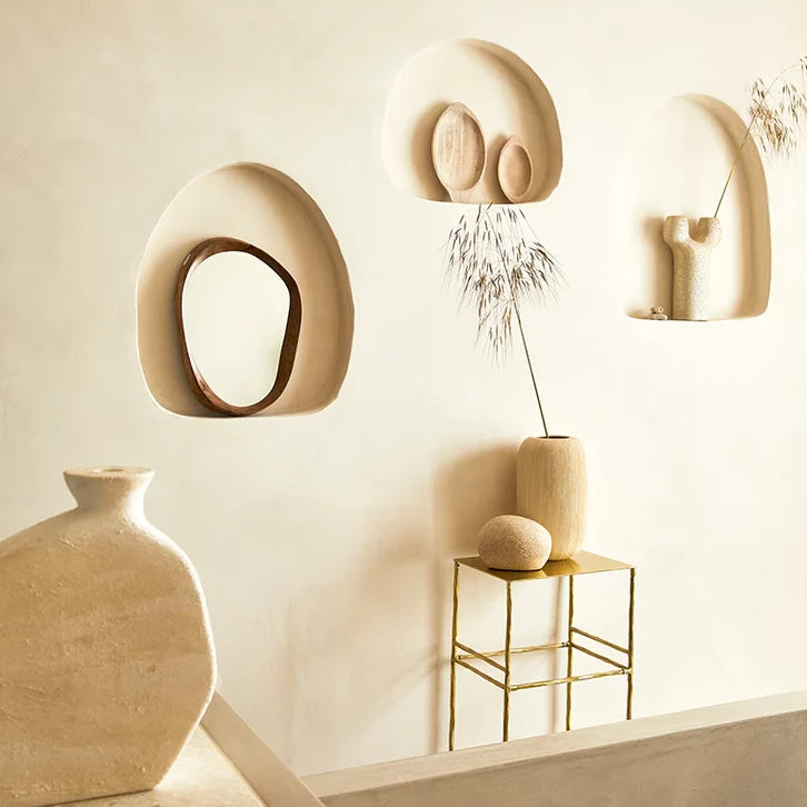 Handmade of mango wood, with an organic, 3D shape, it brings your walls to life. The golden oak finish warms up any room. Material: Mango Wood : 41.3 x 43 x 5 cm Delivery: In stock