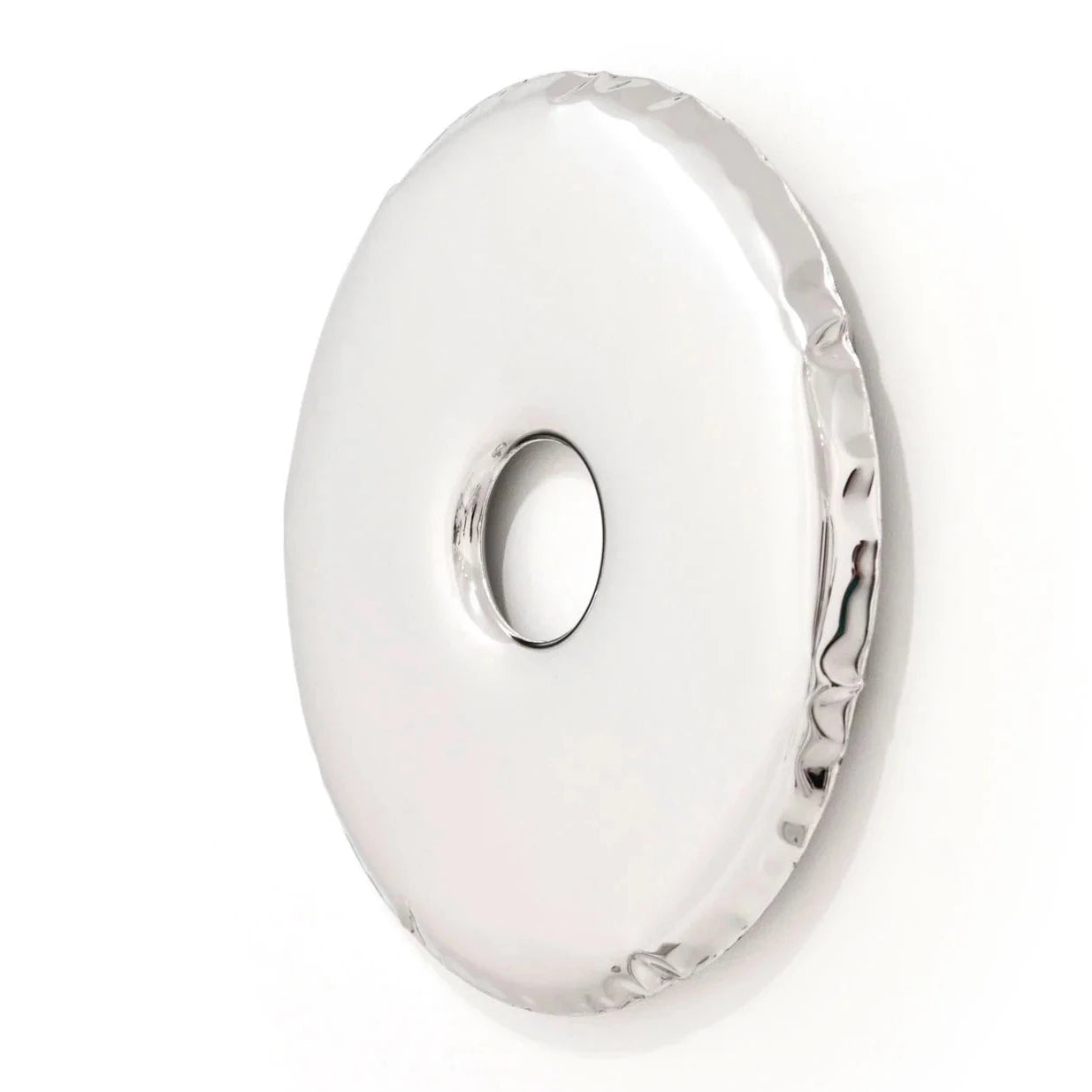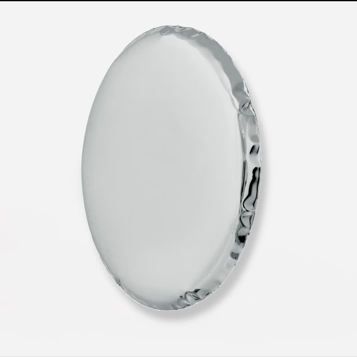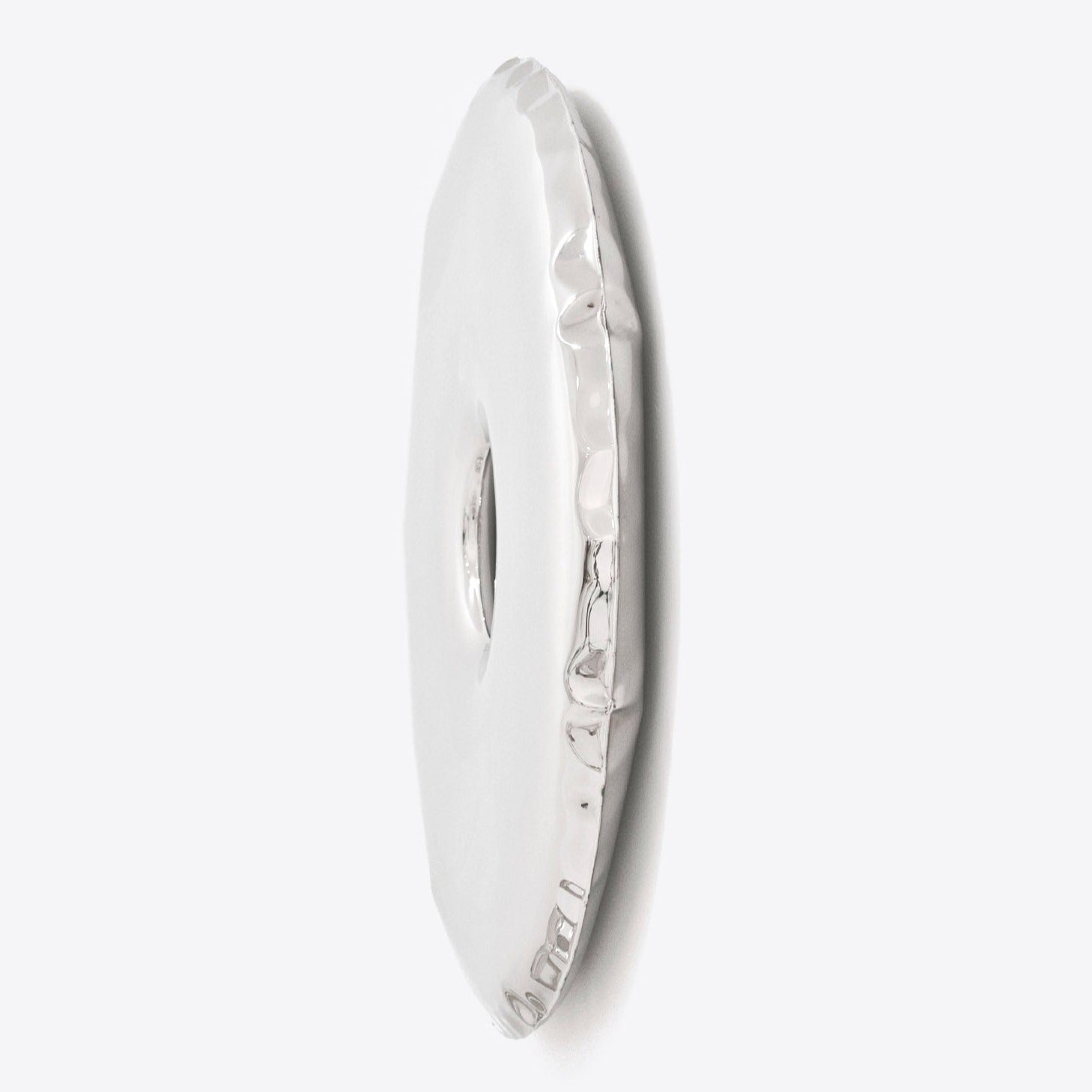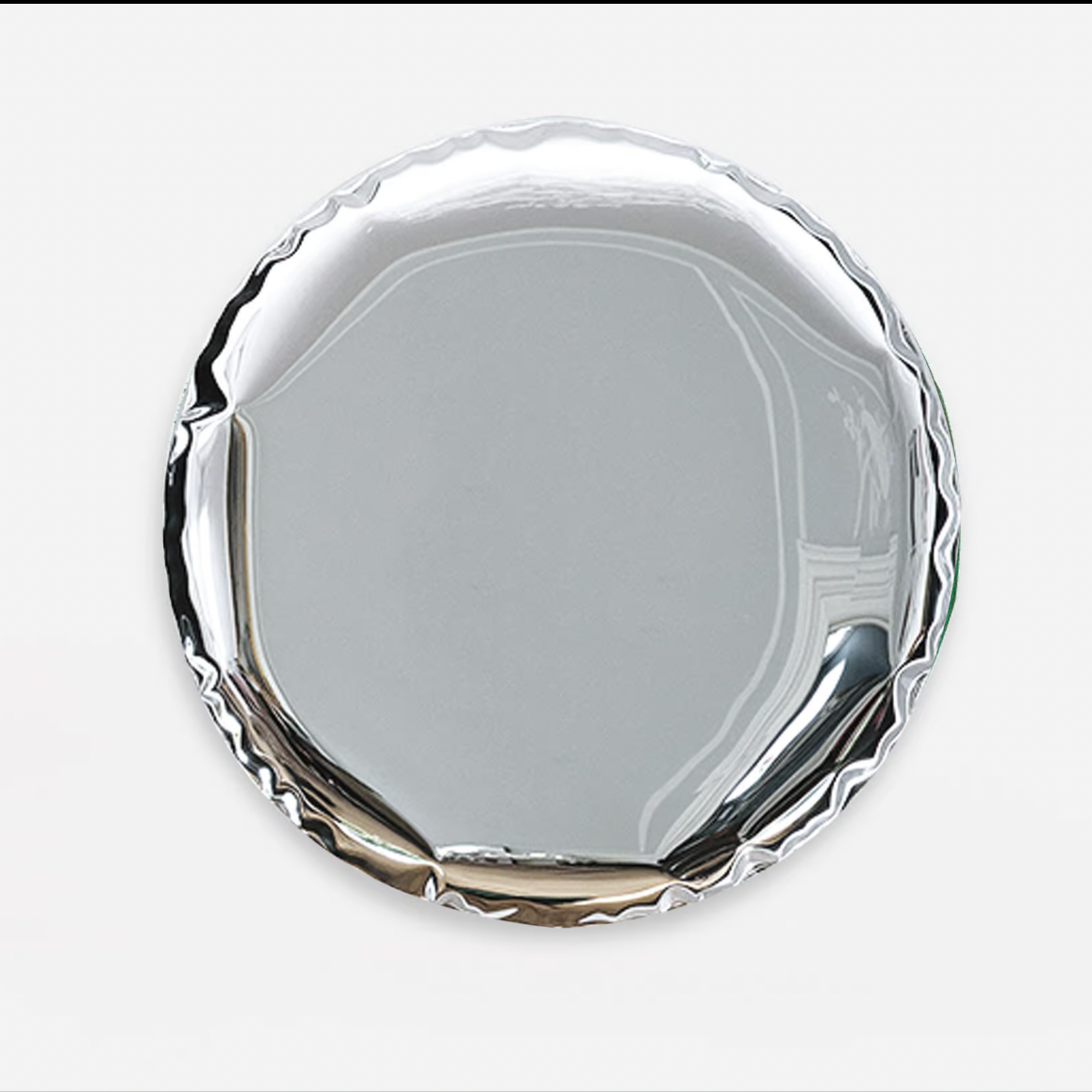 Glanzende, lichtgewicht OKO, een vlaggenschip van Zieta Studio, geïnspireerd op de organische vorm van vloeibaar kwik en een reflecterende waterdruppel. Het gladde, maar gekreukte oppervlak is gemaakt van hoogglanzend roestvrij staal. Materiaal: INOXBeschikbaarheid: 2 - 4 weken