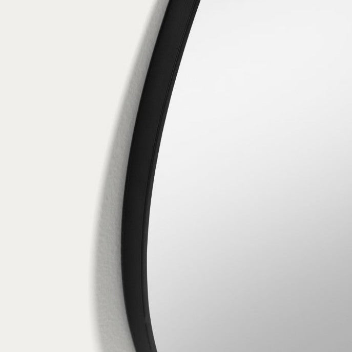 Characteristic of the mirrors, in addition to the shape, is the use of powder-coated black steel. Material: Mirror glass. black steel : XL: W: 73 x H: 151 x D: 1.5 cm Delivery: 2 - 3 weeks