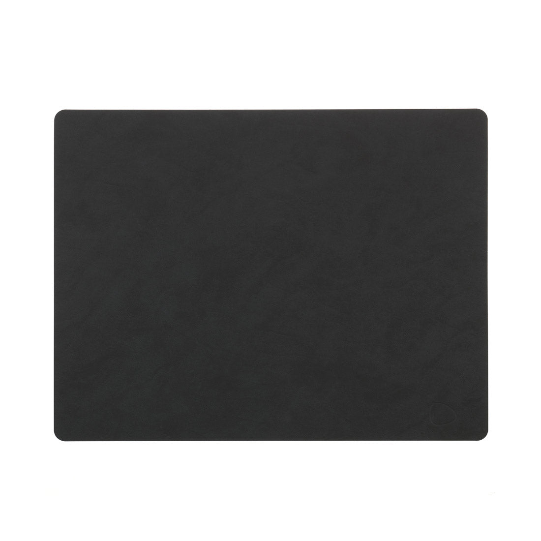 Place mat in recycled leather. A material which makes our table mat both dirt and water repellent, makes it easy to clean and last but not least 100% sustainable. Table mat is durable and easy to clean with a wet cloth or window spray. Brand: Lind DNAMaterial: recycled leatherColour: blackDelivery: In stock Measurements: 35 x 45 cm