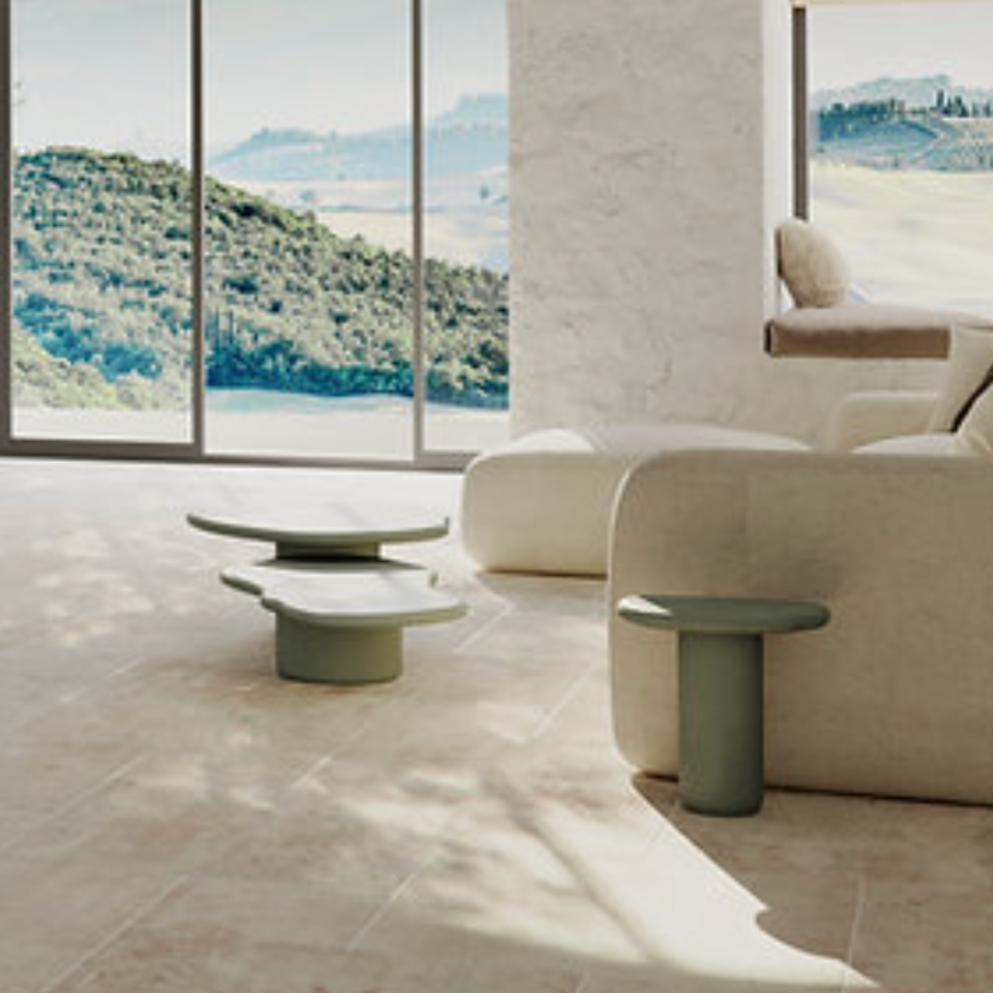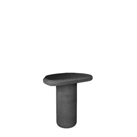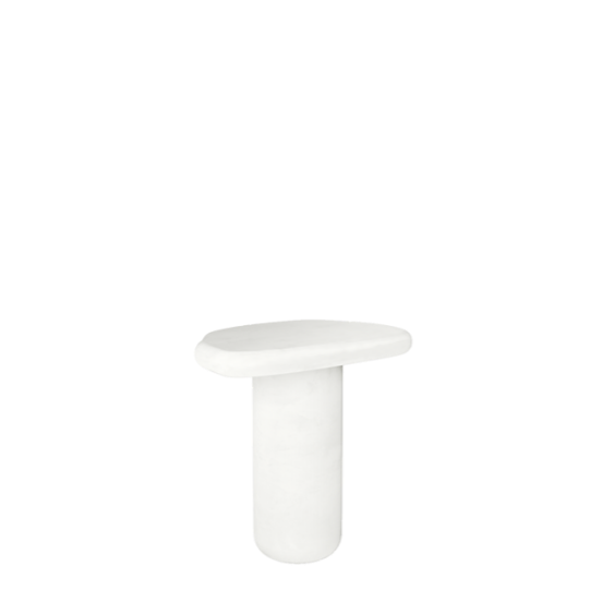 Distinguished by its playful yet elegant silhouette, the table’s contrasting wide, flat legs make it an easy fit for a range of décors.Brand: Mogg Designer: Antonio FaccoMaterial: wax finish concreteColour: IvoryMeasurements: diam: 50 x H: 47 cm