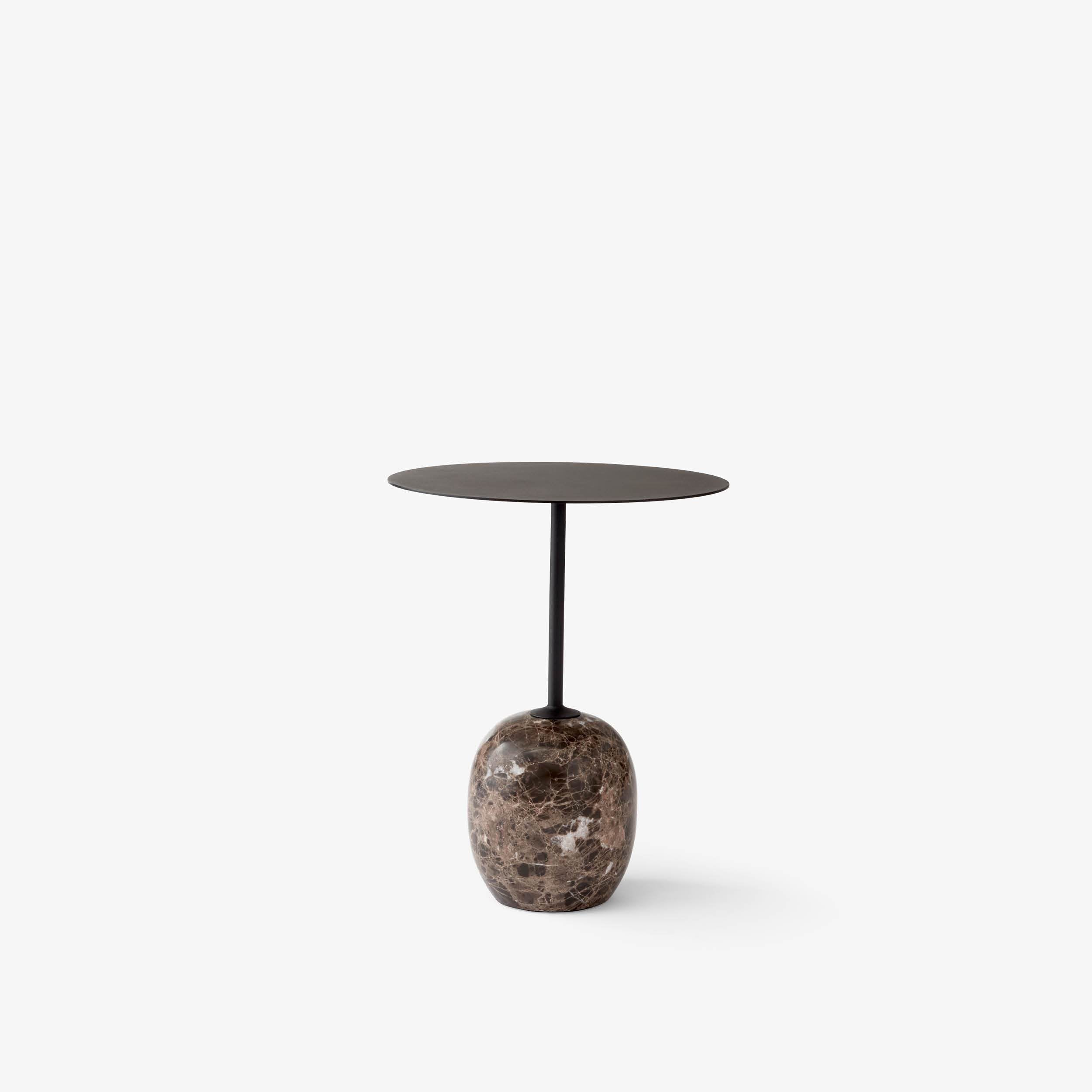 At first glance, Lato resembles a sculpture, with its slim, oval or round table top balanced by an oval-shaped base. Designer: Luca NichettoMaterial: Marble and steelColour: Warm black & Emparador marble Measurements: round: Ø: 40cm- H: 40 cm Oval: H: 45cm - Ø 50 cm