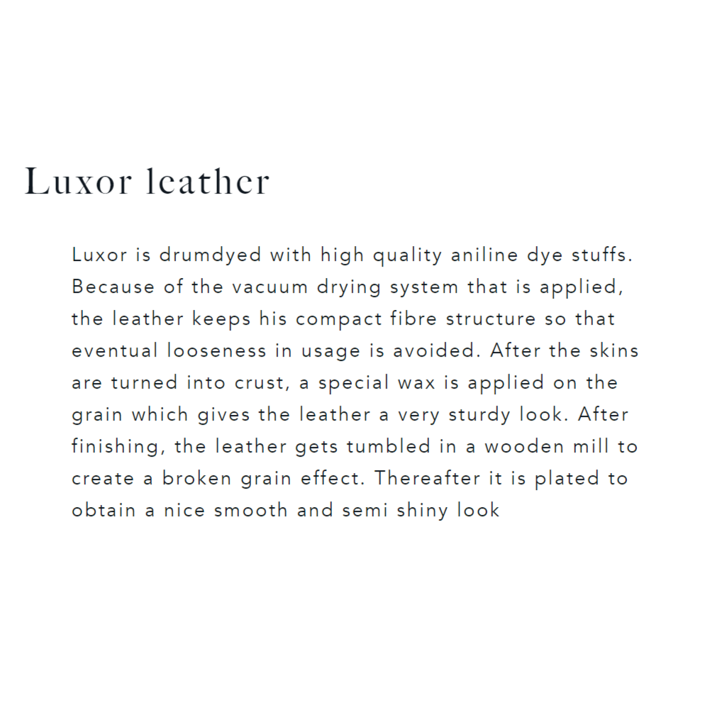 sleek lines and utter comfort Material: Luxor leather Black epoxy steel legs Measurements: W: 85 x D: 45 x H: 40 cm Delivery: 6-10 weaks