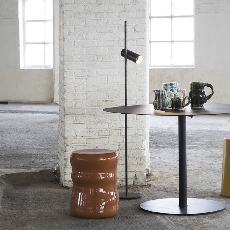 Vervaardigd uit geglazuurd steengoed in diep rood, straalt deze bijzettafel of krukje warmte uit. De verticale ribbels voegen textuur toe. Heel wat van onze creaties zijn met de hand afgewerkt. Hierdoor kunnen ze onregelmatige vormen vertonen, en krijgt elk stuk een uniek karakter. Afmetingen: Hoogte 45 cm / Ø 35...