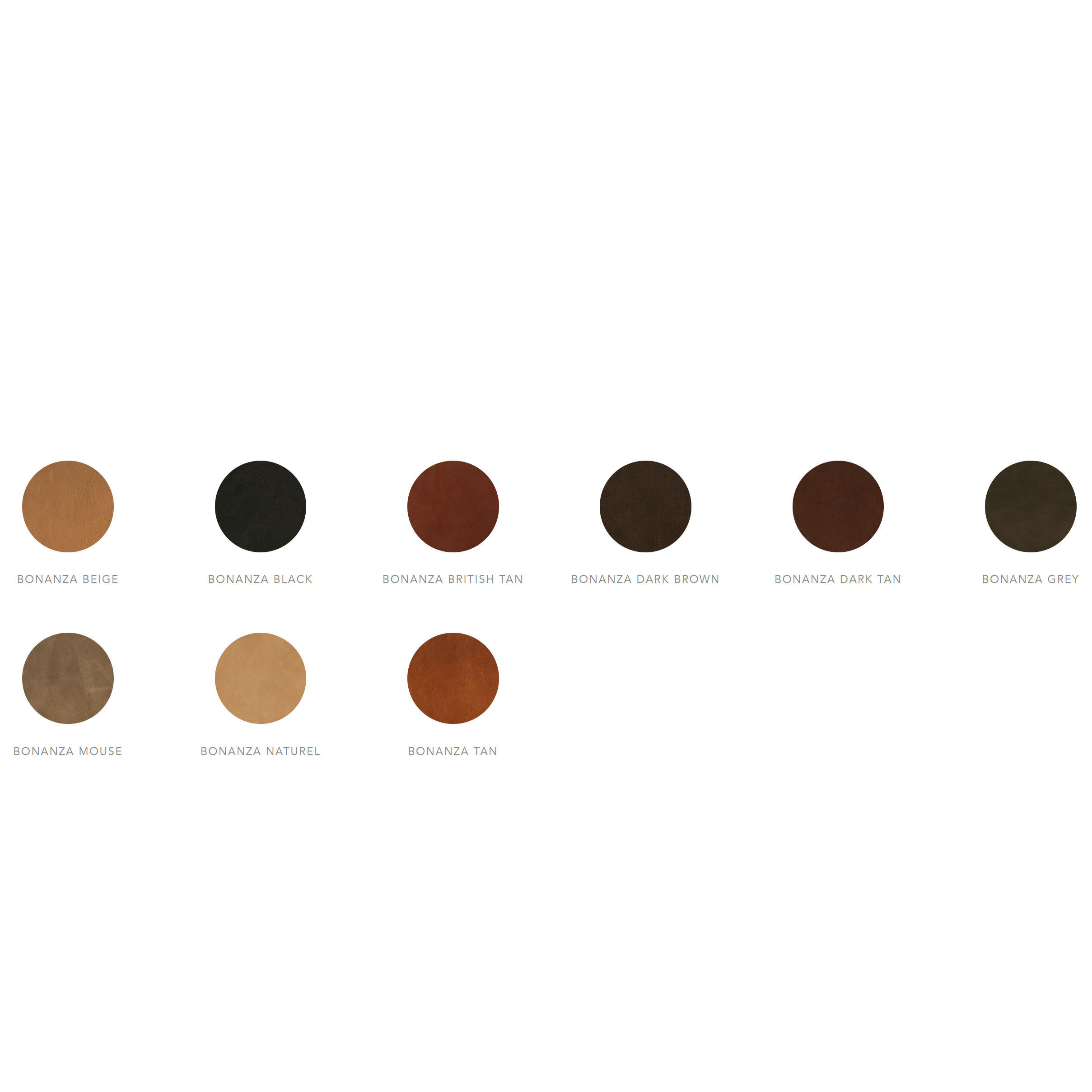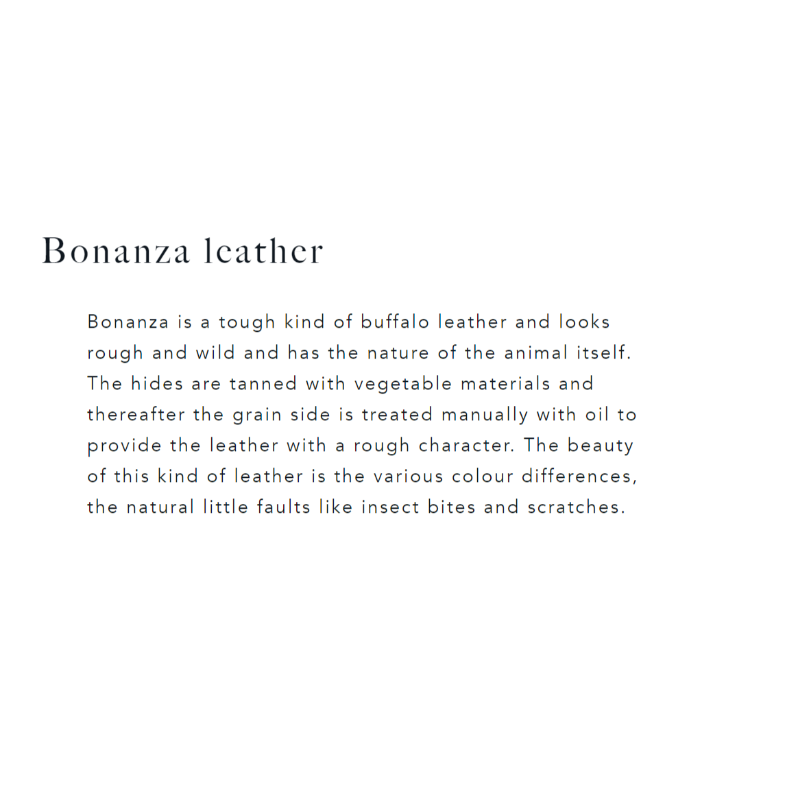 sleek lines and utter comfort Material: Bonanza leather Black epoxy steel legs Measurements: W: 85 x D: 45 x H: 40 cm Delivery: 6-10 weeks