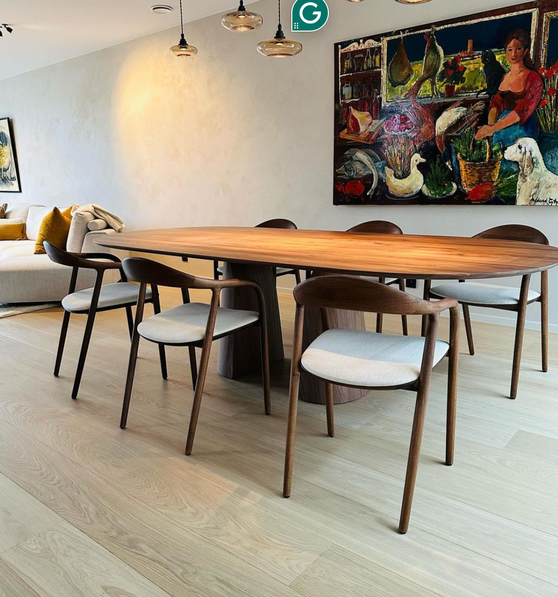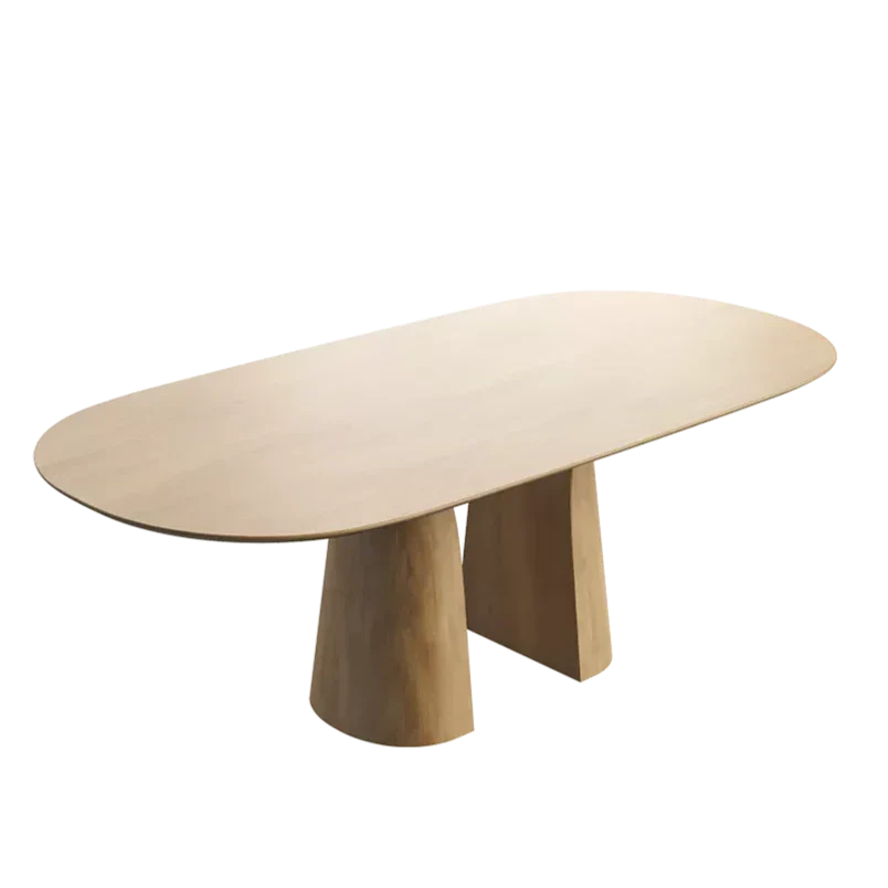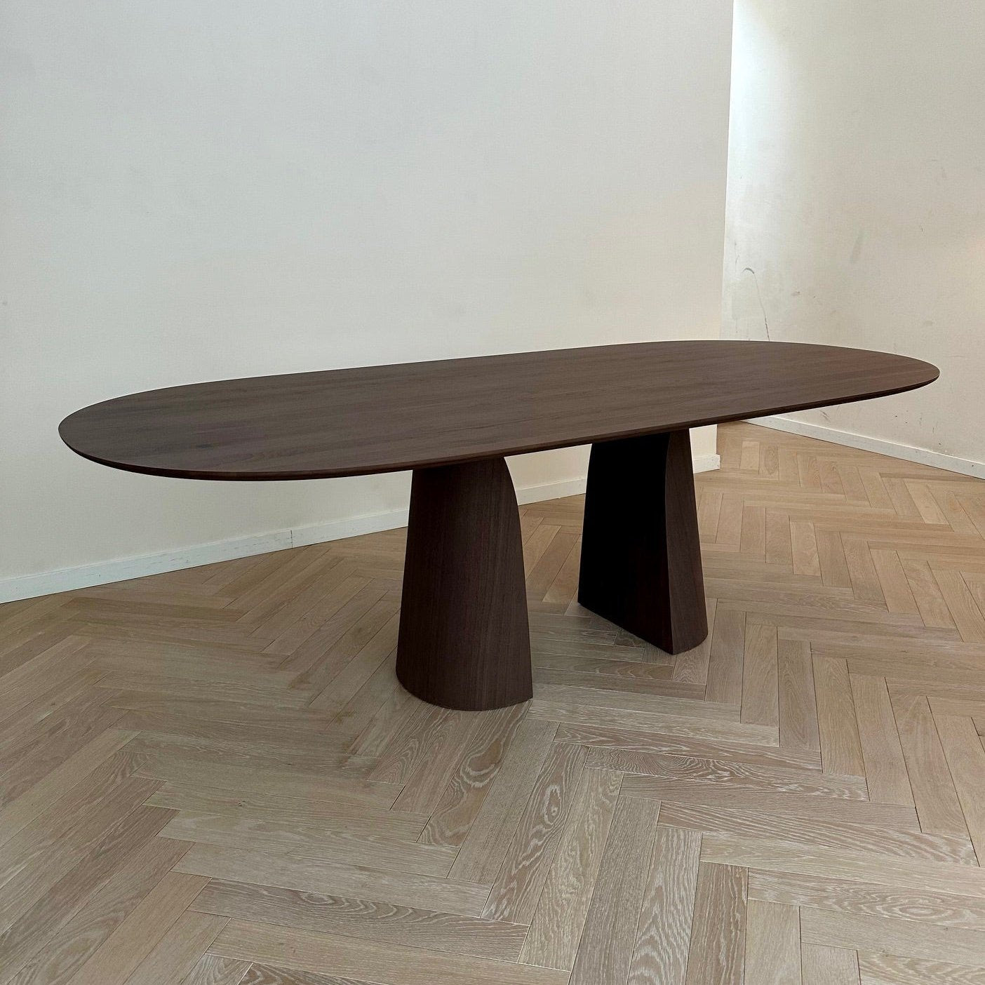 Ovale tafel in massief eikenhout. Verfijnde afwerking en elegante poten Materiaal: massieve eik Levertermijn: 8 weeksAfmetingen: 100x180cm 100x200cm 110x220cm 110x240cm 120x260cm