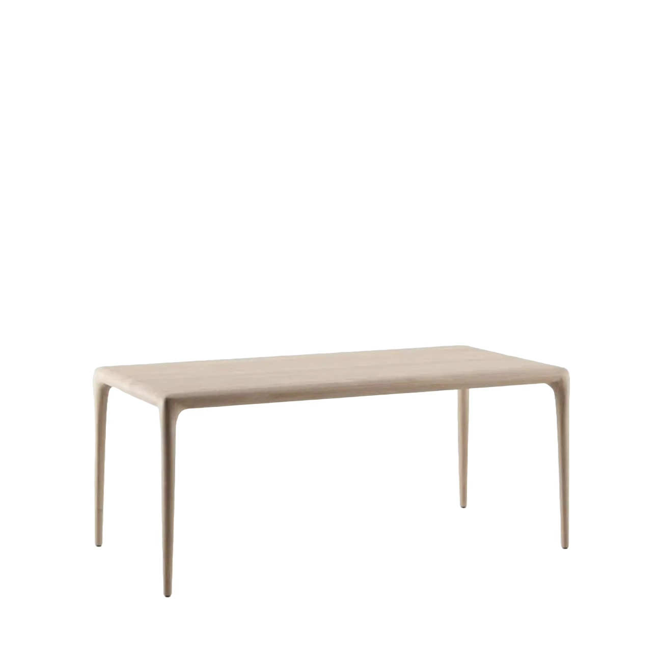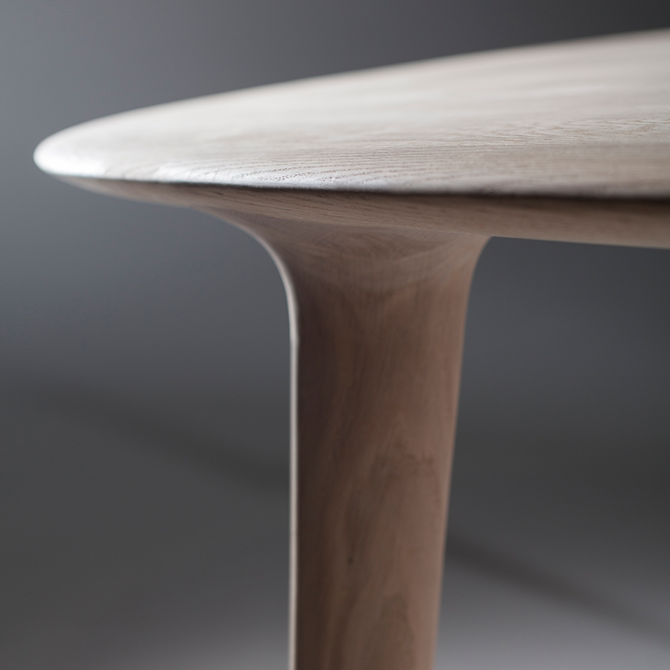 Fijne gradatie is de essentie van de kenmerken in deze tafelstructuur, die lijkt te zijn gemaakt van een enkele fijne potloodstreep gecombineerd met uitzonderlijk vakmanschap in houtbewerking. Het langwerpige tafeloppervlak wordt geaccentueerd en gedynamiseerd dankzij de lijnen van de houtstructuur. Materiaal: Walnoot Beschikbaarheid: 3 - 4 maanden