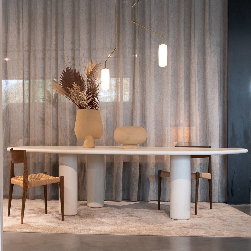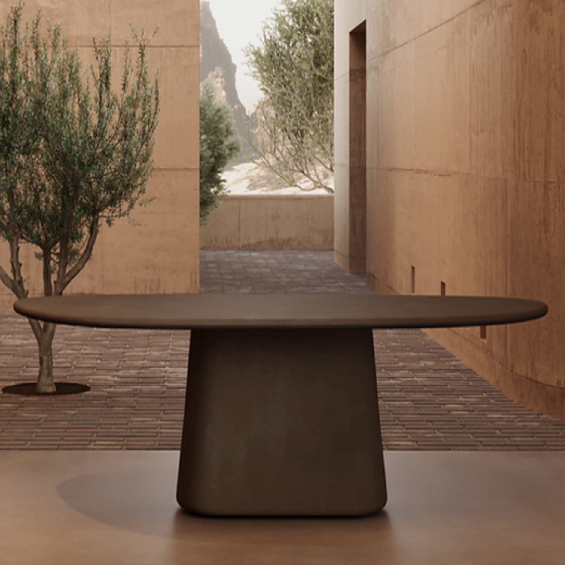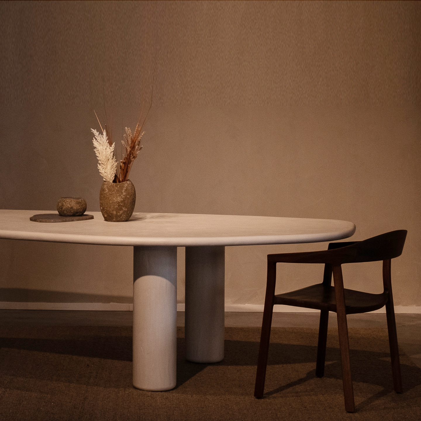 Dinning table with one central leg. Material: lime techniqueColour: Contact us for a custom colour custom sizes or forms are possible.