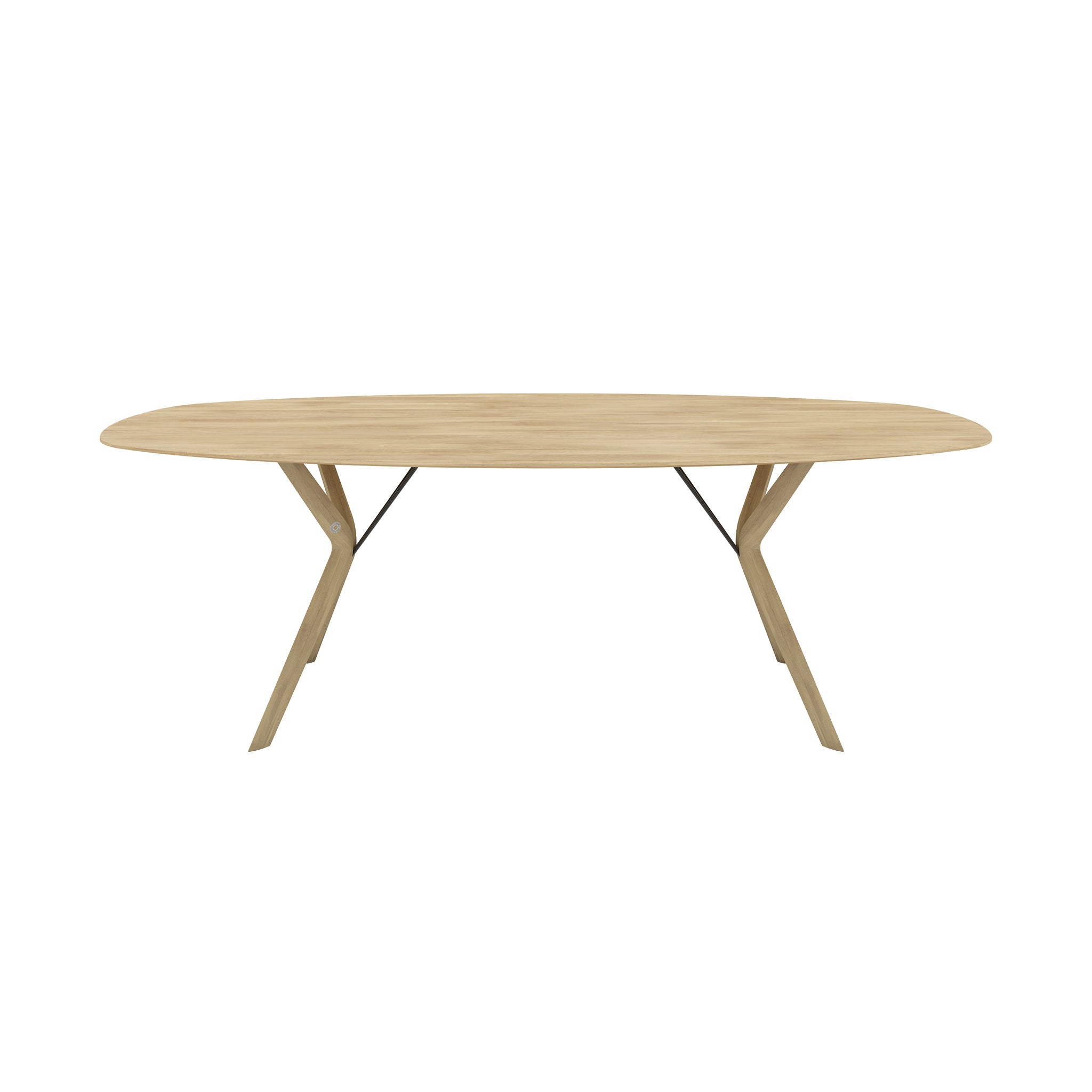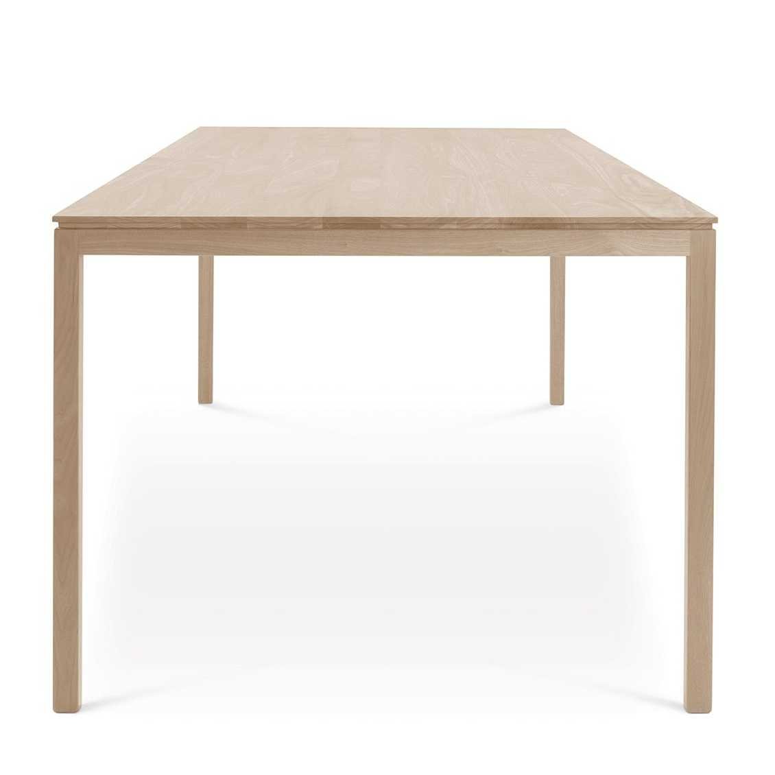 licht en slank design, afgeronde hoeken en een blad van massief hout. Deze tafel zorgt voor een cachet in de leefruimte. De stevige poten staan in het midden van de tafel zodat meer mensen bij elkaar kunnen zitten zonder elkaar te hinderen. Materiaal: EikAfmetingen: 115x140cm 135x160cm 135x180cm 105x160cm 105x180cm 105x200cm...