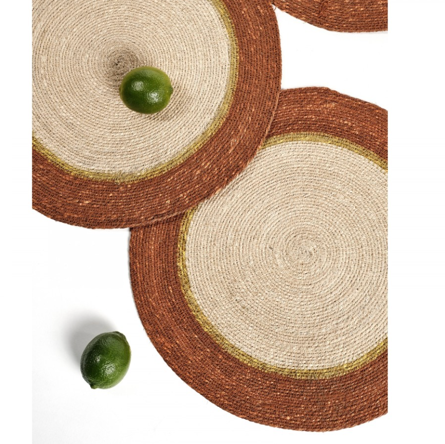 Breng een natuurlijke en stijlvolle toets naar je eettafel met placemat "Giro". Met de hand gevlochten uit waterhyacint (jacinthe d’eau) en met zijn royale diameter van 40 cm is deze placemat niet alleen functioneel, maar ook een echte sfeermaker. Perfect voor dagelijks gebruik, een feestelijk diner of als decoratief accent...